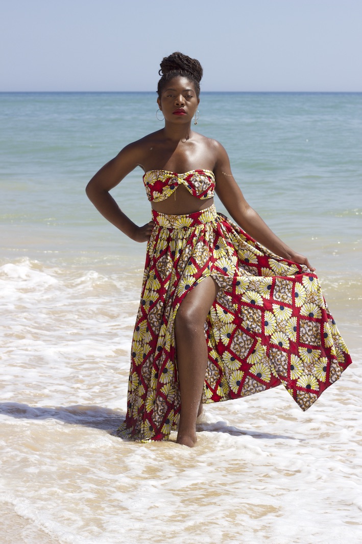 Golden rays of sunshine against my skin on the golden sands of Faro beach. I wear my golden crown under a golden sun because I am royalty. My melanin is golden, and my blackness is magic. I am an African queen.